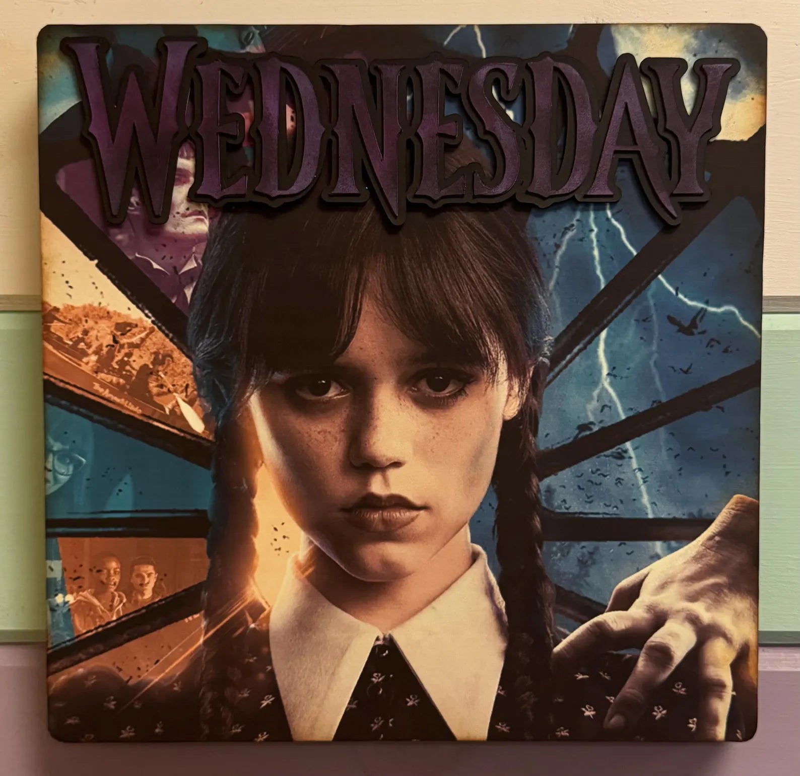 Halloween Villain Inspired Movie Plaque. These plaques are hand painted and decorated. It is made with scrapbook paper, paint, embellishments and ink. Plaque size is 10"x10" with rope for wall hanging. All of our plaques are made as one of a kind items.